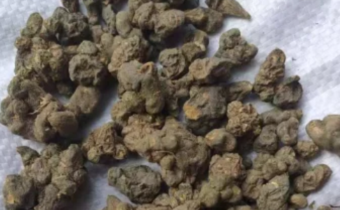 【性狀】本品呈類球形、長(zhǎng)圓形或不規(guī)則塊狀,長(zhǎng)0.5~3cm,直徑0.5~2.5cm。表面灰黃色、暗綠色或黑褐色,有瘤狀突起和不明顯的細(xì)皺紋,頂端鈍圓,可見莖痕,四周有淡黃色點(diǎn)狀葉痕及須根痕。質(zhì)硬,斷面黃白色或黃色,顆粒狀或角質(zhì)樣,有的略帶粉性。無臭,味苦。